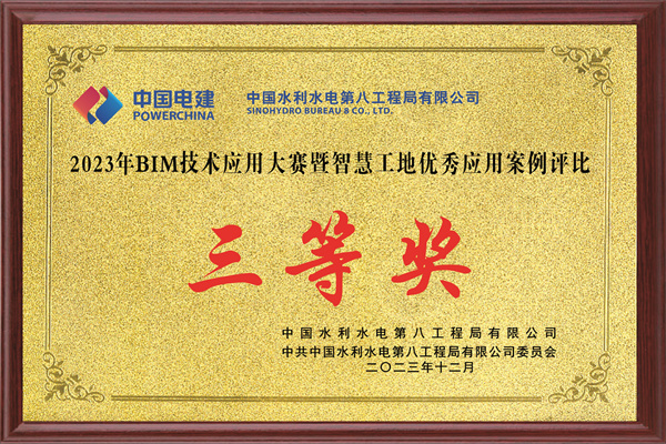 水电八局2023年度BIM应用技术大赛三等奖