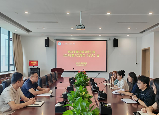 9月2日,太阳成官网党总支理论学习中心组召开2025年第八次集体学习(扩大)会,此次学习以“深入学习领会习近平经济思想”为主题。会议由学院党总支书记龙犇主持,学院党总支委员、领导班子成员、全体科级干部参会。